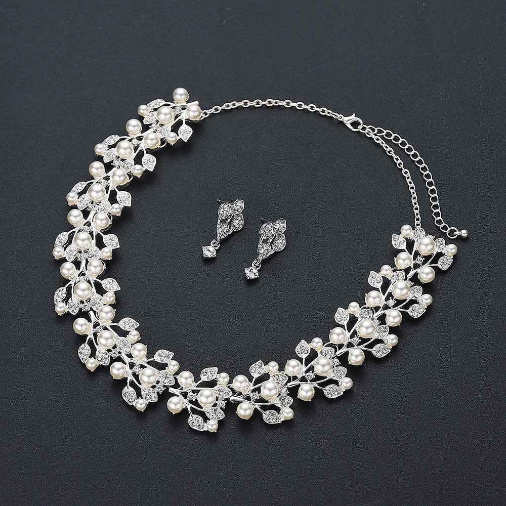 Cross-border creative new European and American bride pearl necklace earrings bracelet three-piece suit wedding jewelry wholesale