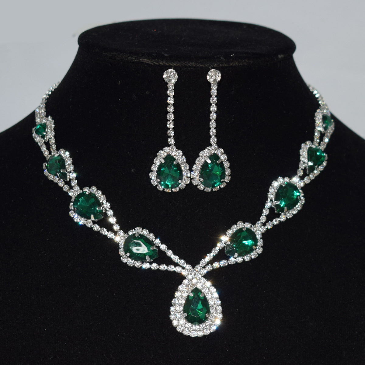 *Product Name*: European and American temperament bridal jewelry set wedding jewelry green water drop necklace earrings set Jewelry Set